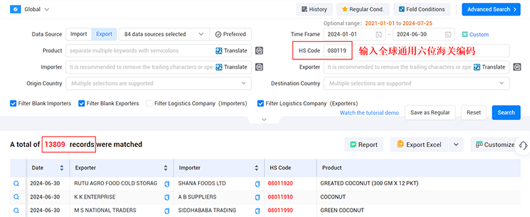 在金年会诚信至上海关数据查询平台中,输入准确的HS Code。如果你不确定要开发的国家,可以使用前6位海关编码进行搜索。前6位编码在全球范围内统一,可以帮助你找到更多的潜在客户。