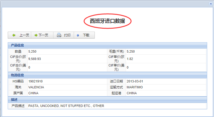 西班牙是一个位于欧洲西南部的国家,西邻同处于伊比利亚半岛的葡萄牙,北濒比斯开湾,东北部与法国及安道尔接壤,南隔直布罗陀海峡与非洲的摩洛哥相望。西班牙的首都马德里,官方语言西班牙语,货币为欧元。因为西班牙海关数据没有西班牙采购商字段,所以该数据不能起到开发西班牙客户的作用,但是可以根据核心字段来分析西班牙市场需求量与价格。